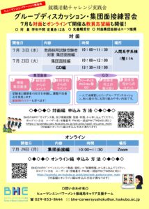 7月 就活支援企画 面接・GD練習会のご案内(教採対策も追加開催)
