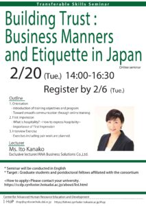 【博士 PhD】Sponsored by Hokkaido University:Building Trust : Business Manners and Etiquette in Japan