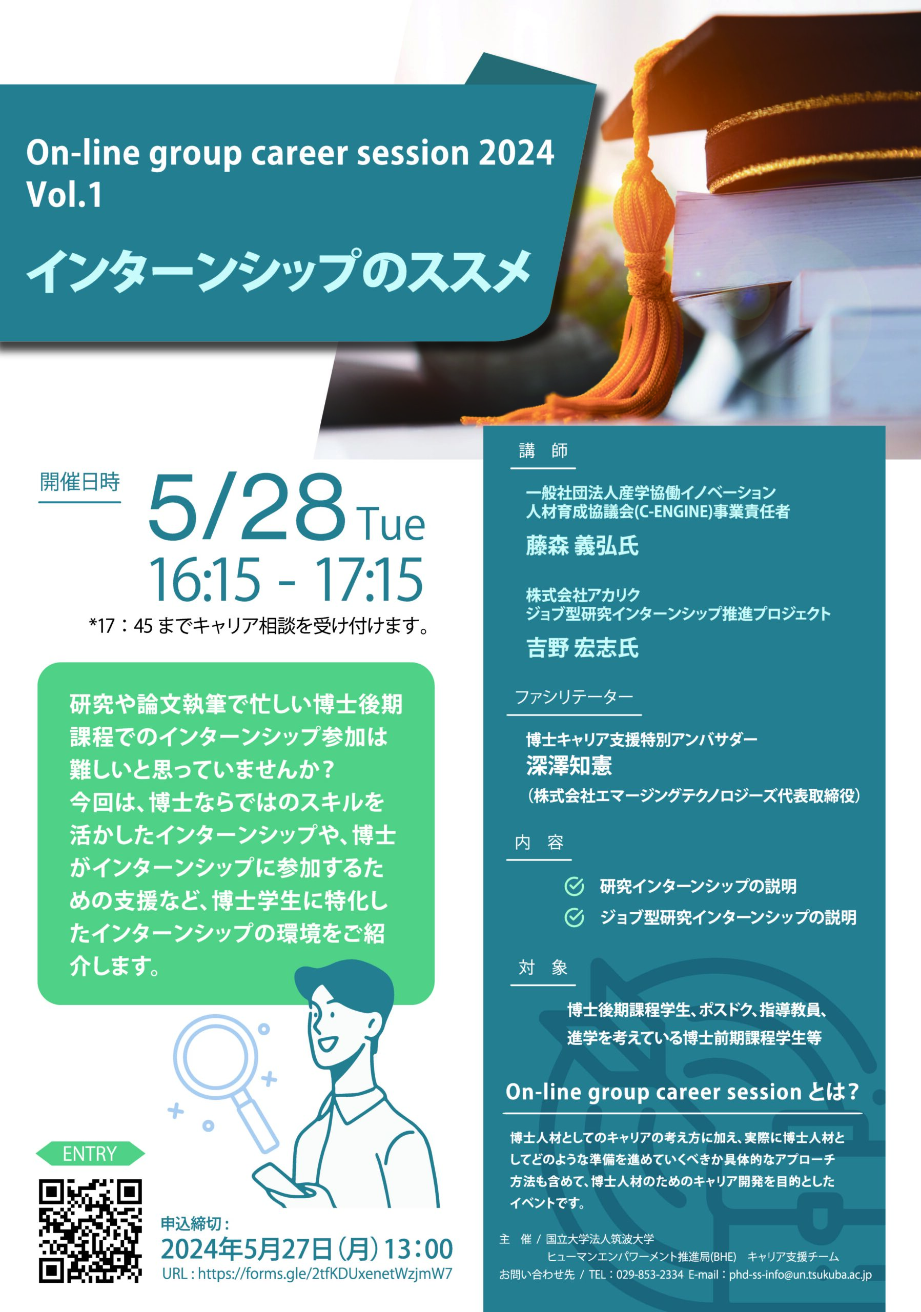 | 開催日時 | 5/28(火) 16:15-17:15 ※17:45までキャリア相談を受け付けます。 |