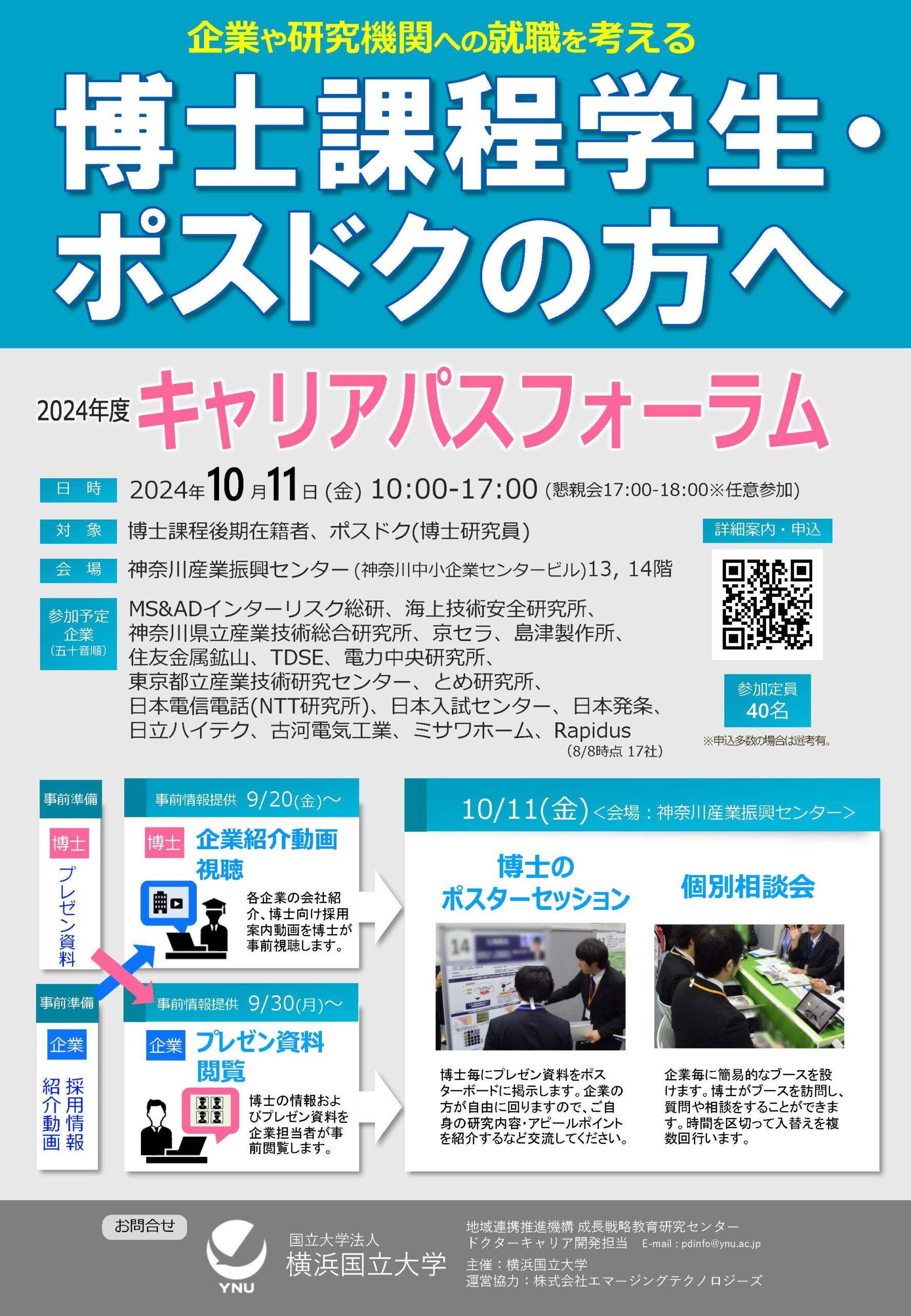 横浜国立大学では、博士人材と企業の交流会「キャリアパスフォーラム」を今年度も対面にて開催致します。