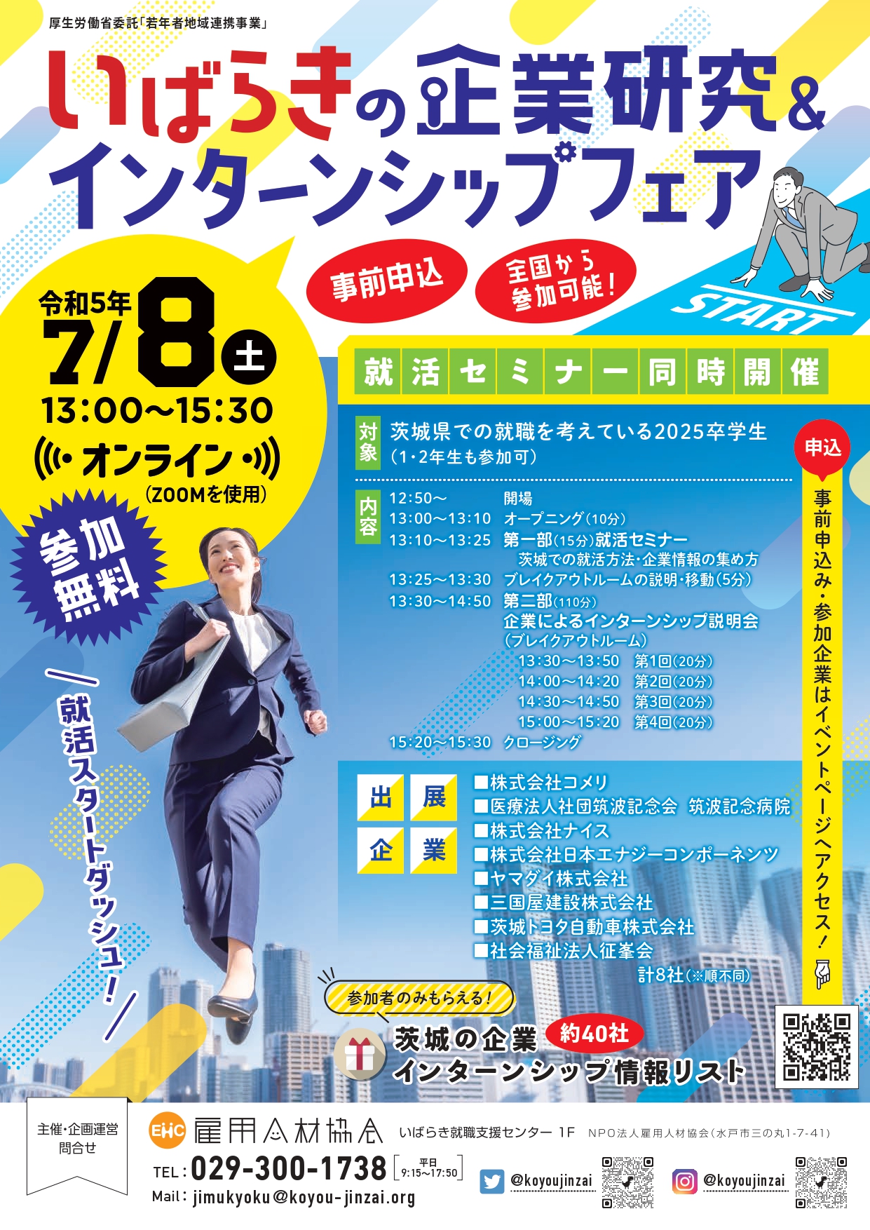| 主催 | NPO法人 雇用人材協会(茨城県水戸市三の丸1-7-41) jimukyoku@koyou-jinzai.org 029-300-1738(平日9:15~17:50) |