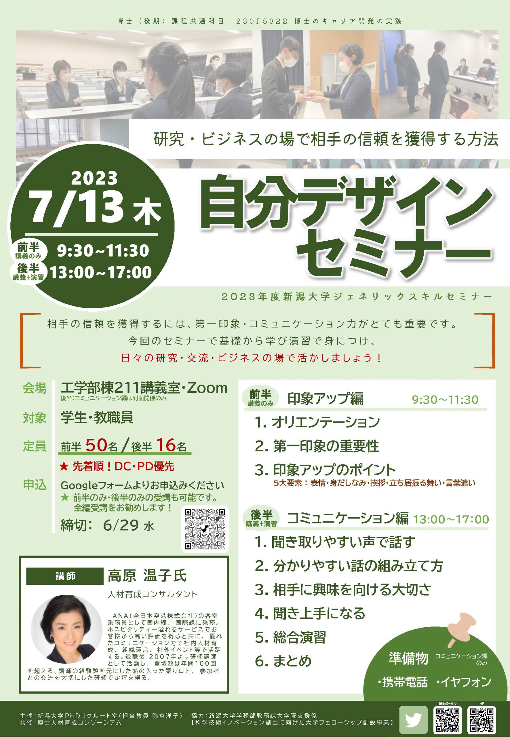 新潟大学「自分デザインセミナー」フライヤー |