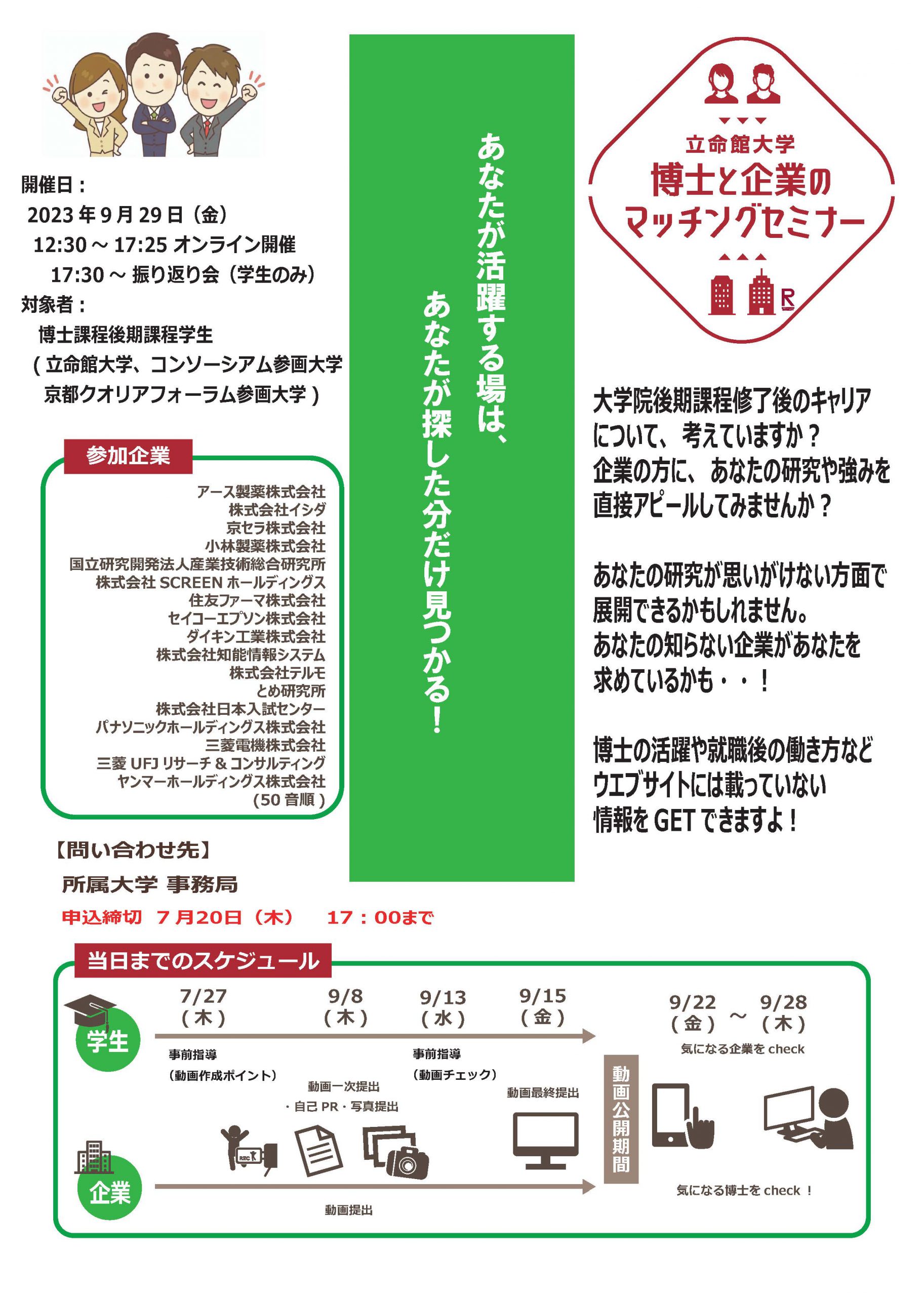 230929_博士と企業のマッチングセミナー_1(他大学用_チラシ) 230929_博士と企業のマッチングセミナー_2(共通_チラシ) 参加申込書 |
