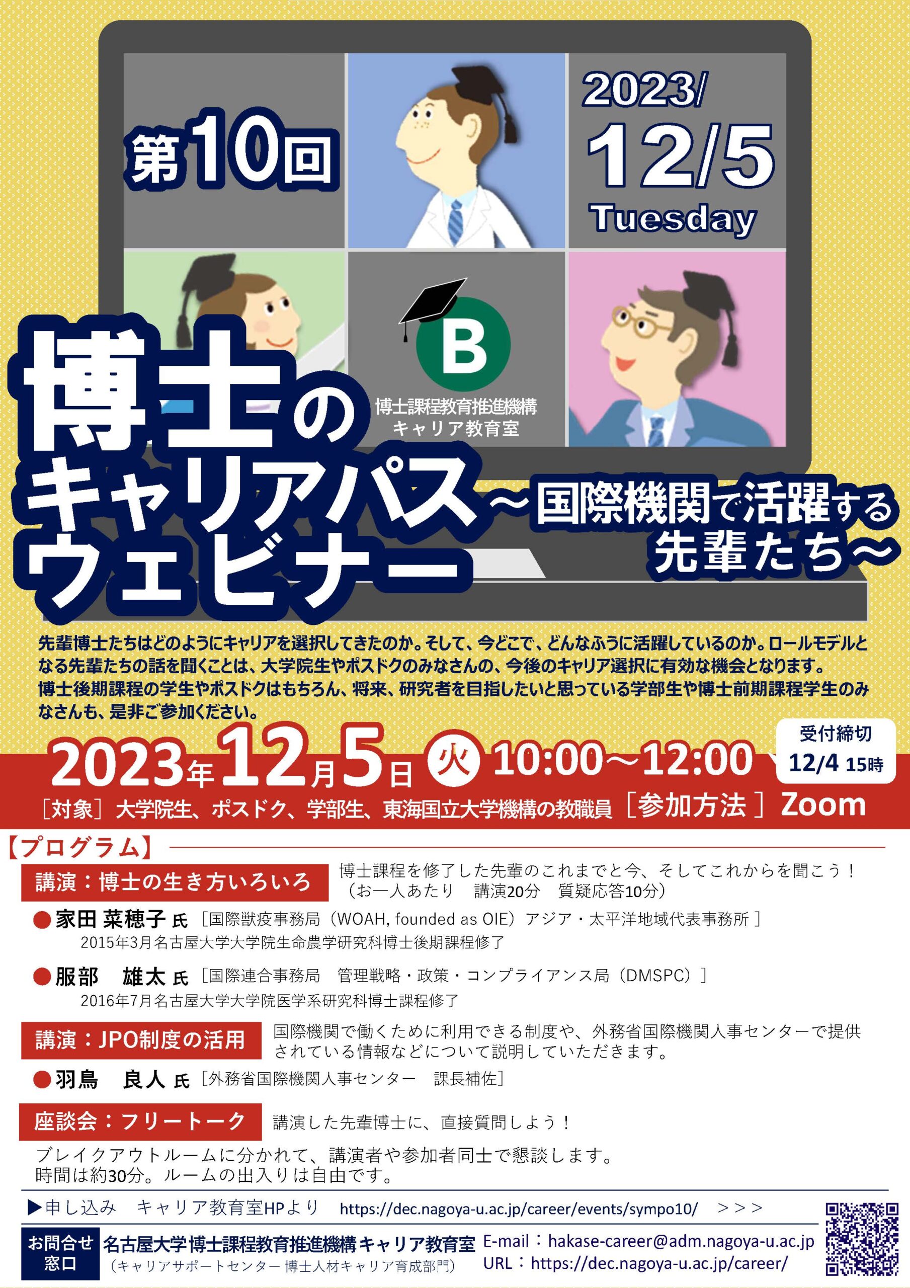先輩博士たちの、これまでと今、そしてこれからのキャリアについてお話しいただく予定です。