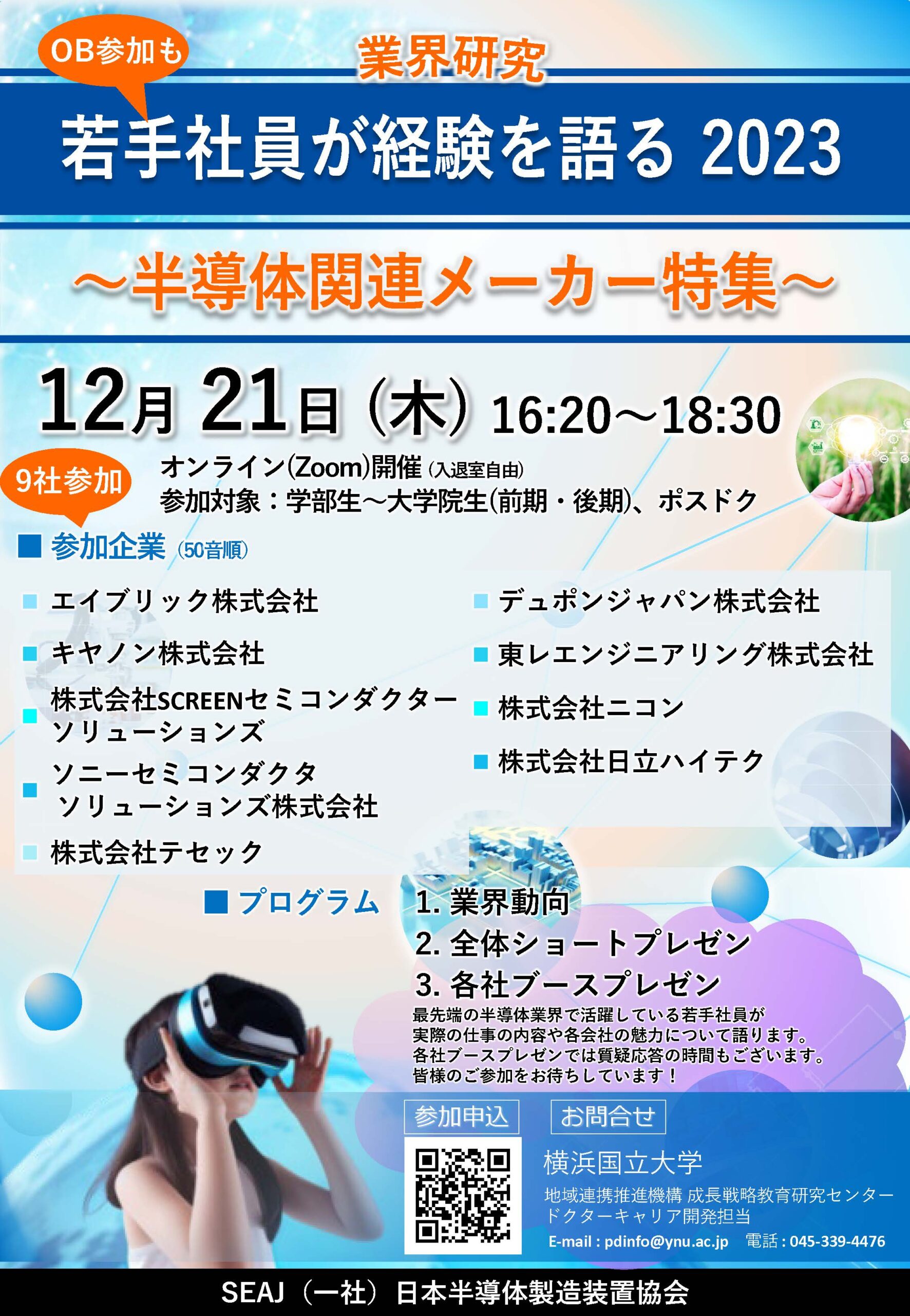 日本半導体製造装置協会(SEAJ)所属企業が参加する、半導体業界研究のオンラインセミナーを開催いたします。