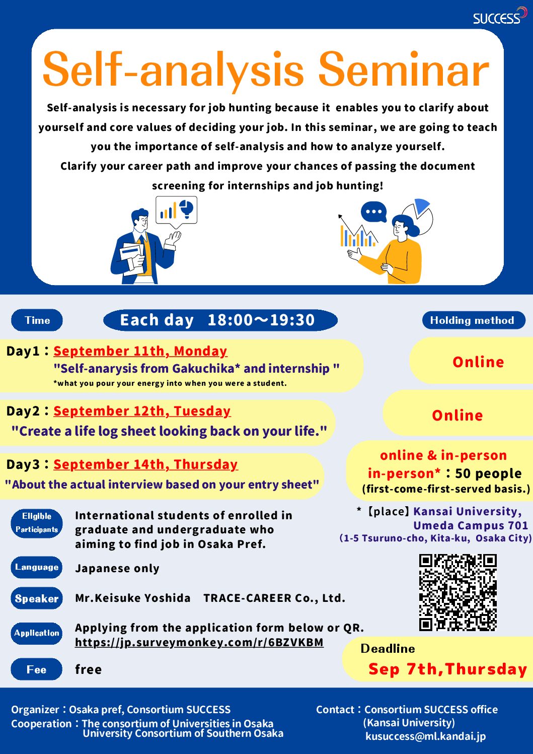 It is essential in job hunting. In this seminar, we will teach you the importance of self-analysis and how to analyze yourself.