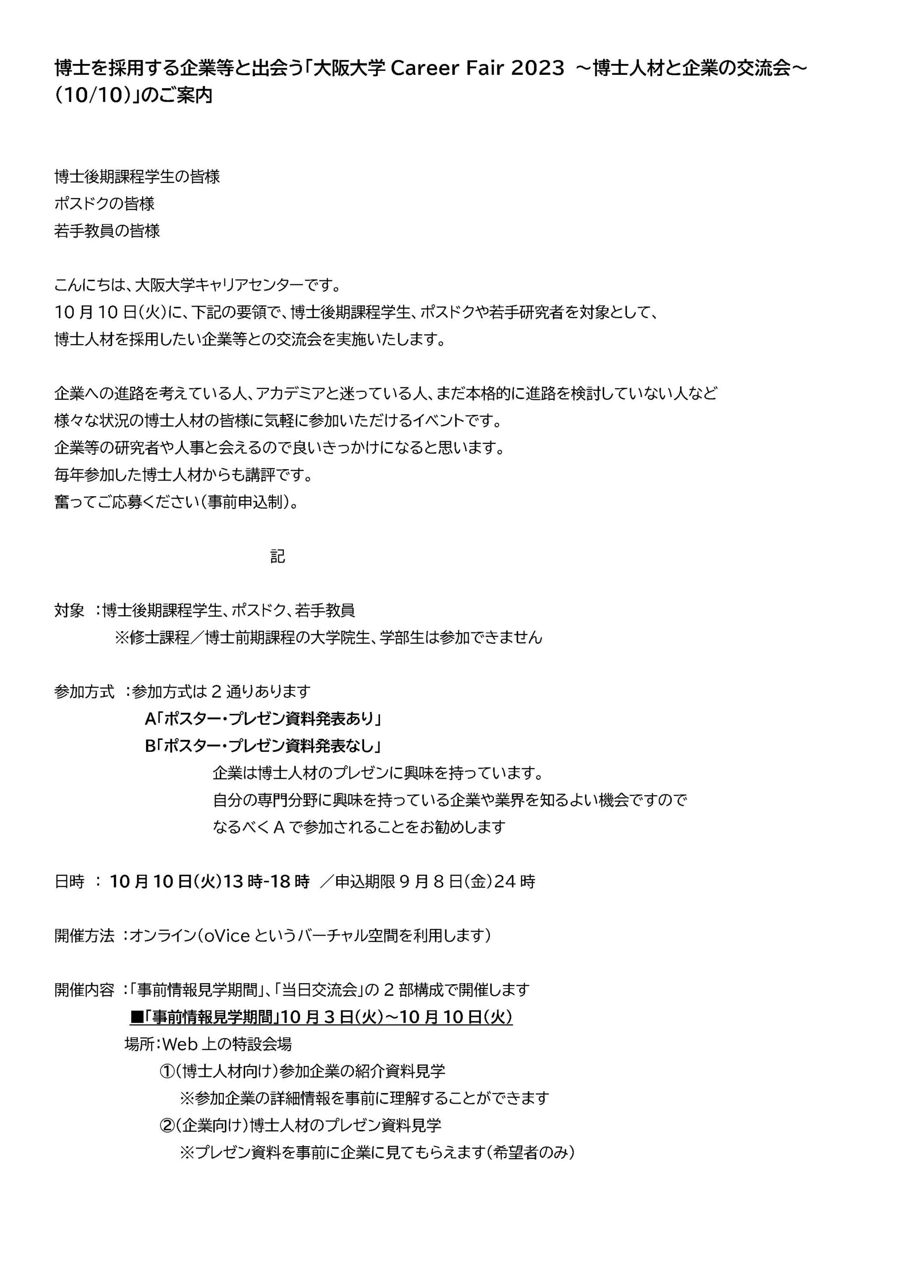 大阪大学キャリアフェア 大阪大学キャリアフェア1 大阪大学キャリアフェア2 |
