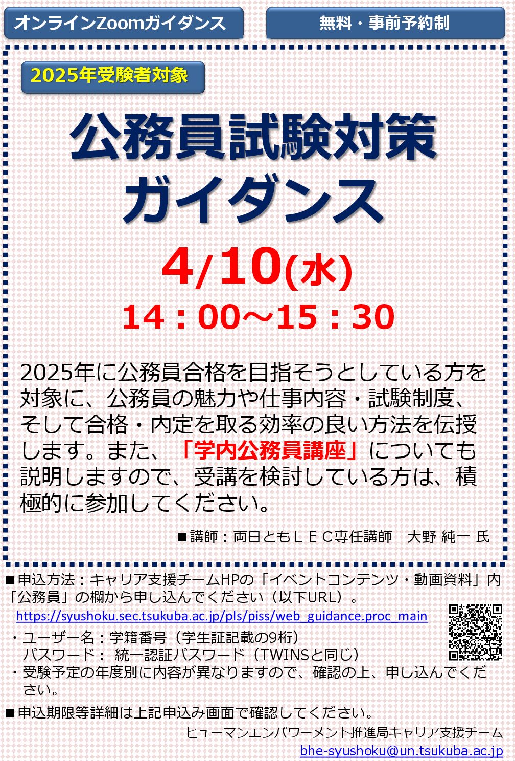 ■申込方法:キャリア支援チームHPの「イベントコンテンツ・動画資料」→「公務員」の欄から申し込んでください(以下URL)