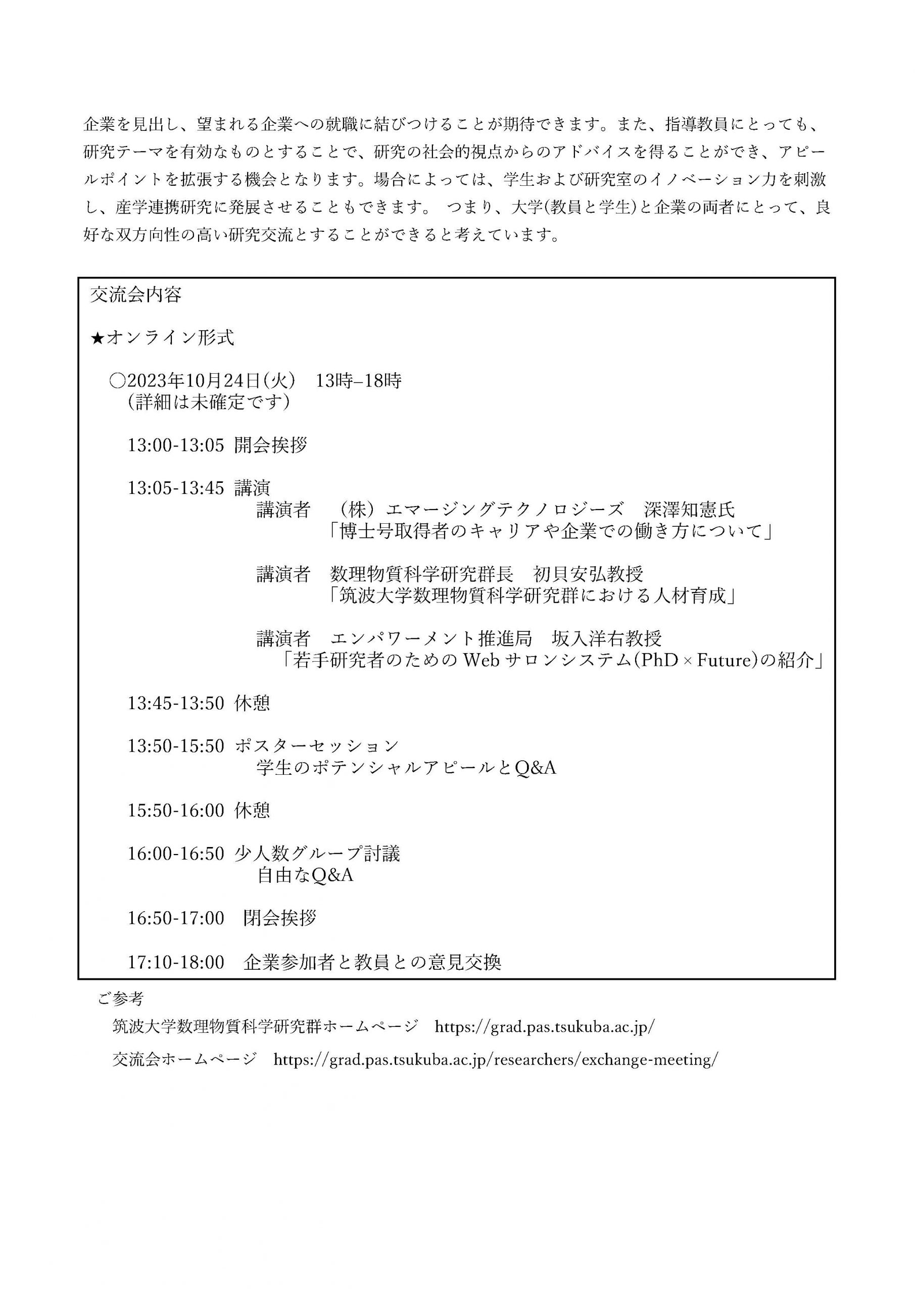 数理物質科学研究群より博士課程学生と企業の交流会のご案内です!