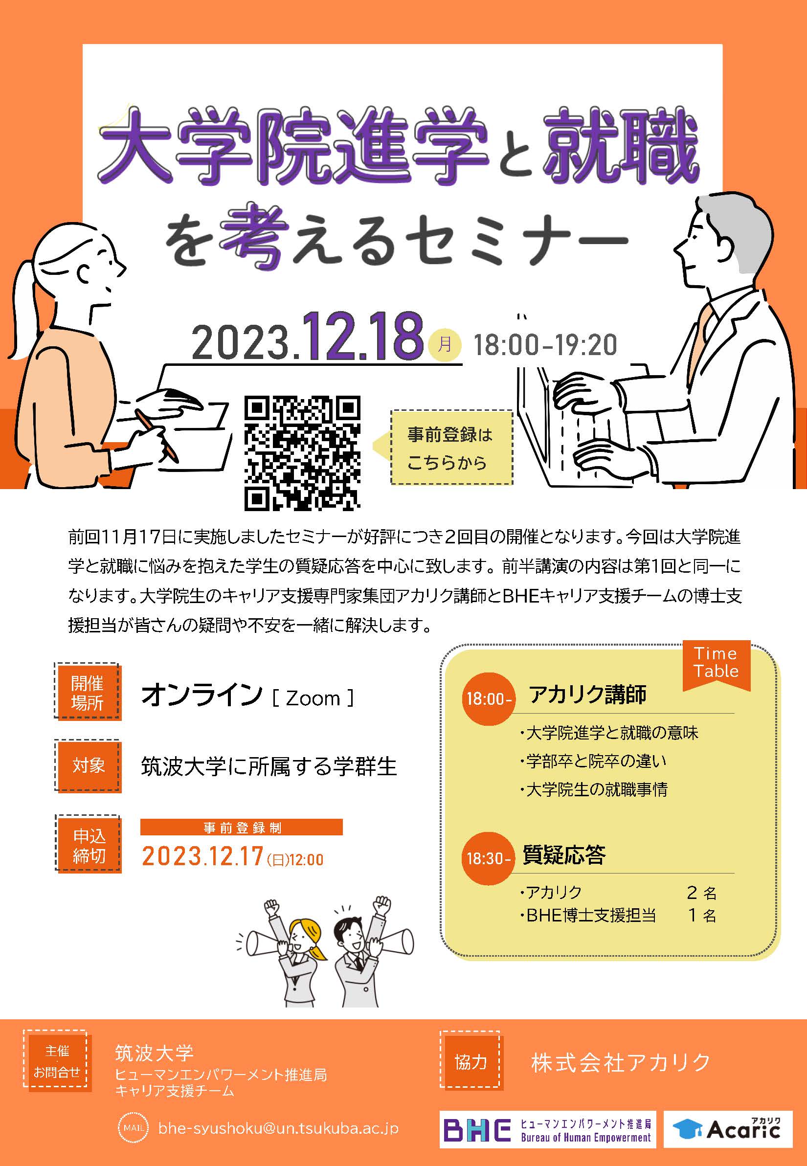 前回11月17日に実施しましたセミナーが好評につき2回目の開催となります。今回は大学院進学と就職に悩みを抱える学生の質疑応答を中心に実施します。