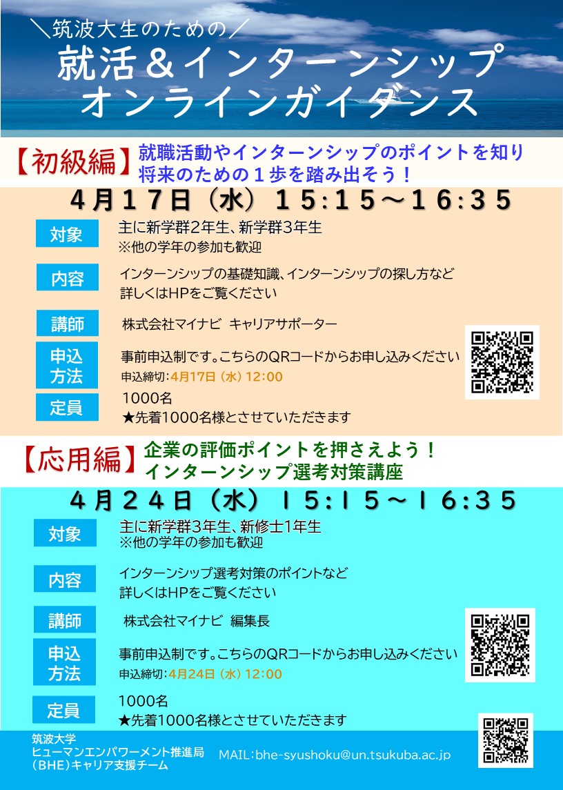 Mail:bhe-syushoku#@#un.tsukuba.ac.jp(#を取り除いてください)