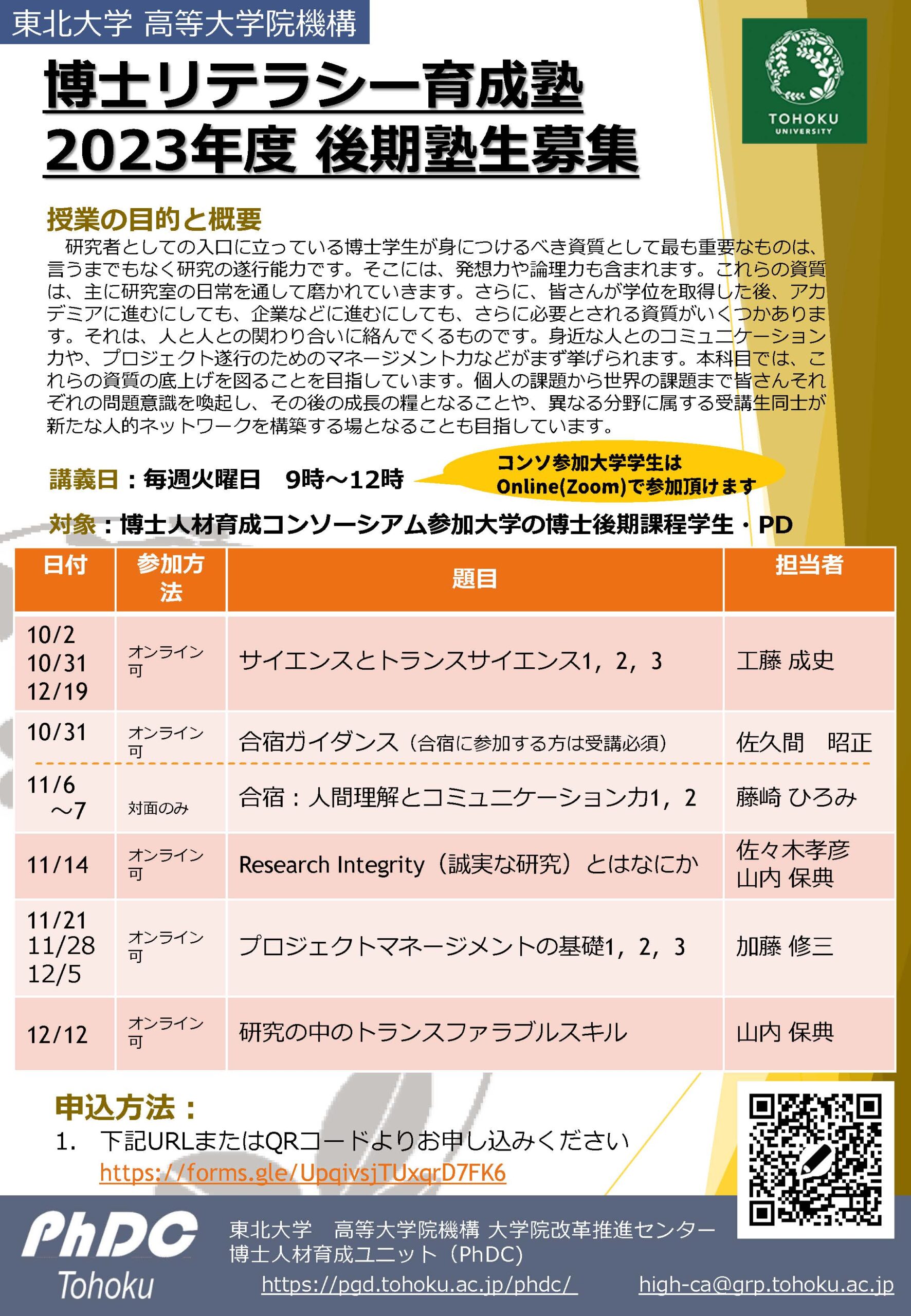 トランスファラブルスキルの養成を目的とした「博士リテラシー育成塾」が開催されます。