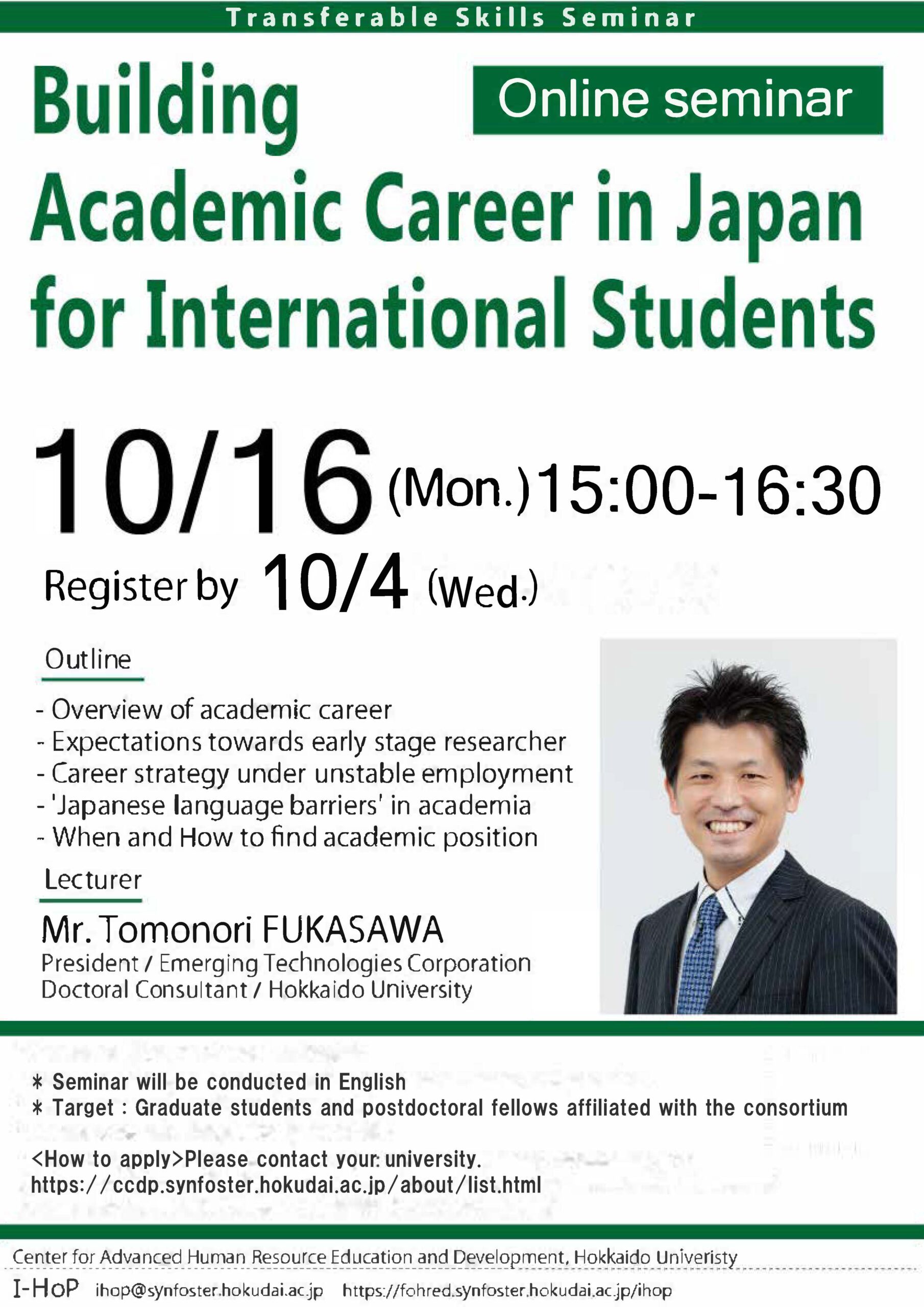 【参加申込書】Building Academic Career in Japan for International Students |