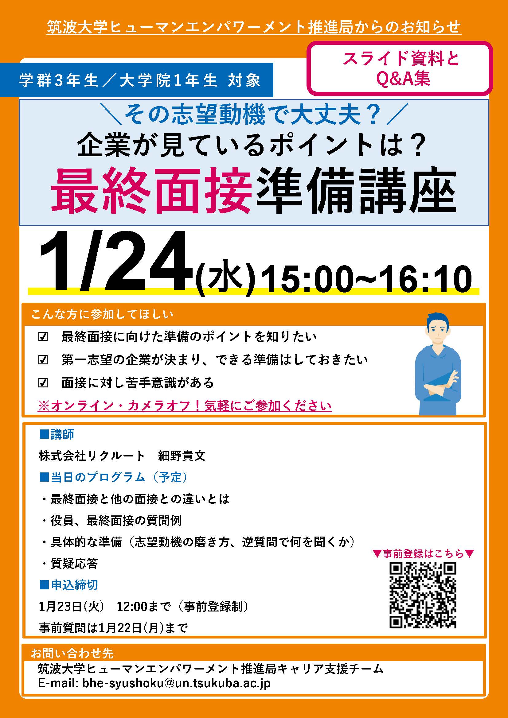 スライド資料・Q&A掲載中:最終面接準備講座(1月24日(水)実施)