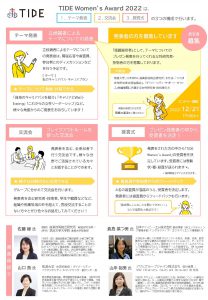 ※ダイバーシティ・アクセシビリティ・キャリア(DAC)センター/ダイバーシティ担当よりお知らせです。 ![]() 2023年2月3日(金)の14時から、筑波大学・日本IBM株式会社・産業技術総合研究所主催による異業種交流会 TIDE Women's Award 2022 を開催いたします! そこで、このイベントに参加する学生の方を募集いたします! 前線で活躍する研究者の方から学べる大変貴重な機会です。 気になる方はぜひ、チラシにて詳細情報もあわせてご確認くださいね。 【日時】2023年2月3日(金)14:00-16:00(開場 13:50) 【会場】オンライン開催(Zoom) 【内容】 ・今年度のテーマ『私のキャリアパス・キャリアプラン』に沿ったプレゼンテーション ・参加者同士の交流会 ・「TIDE Women’s Award」授賞式 【申込方法】以下URLから申し込みをお願いいたします。 https://forms.gle/ZkkwrAakfwfhZ7ug9 (参加費無料) 【申込締切日】2023/1/31(火) 【お問合せ先】 DACセンター/ダイバーシティ担当 TEL:029-853-8504 FAX:029-853-8505 Mail:diversity♯@♯un.tsukuba.ac.jp (♯を取り除いてください) |