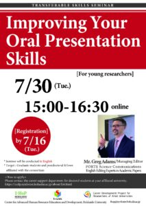 【修士・博士】北海道大学主催:Improving Your Oral Presentation Skills