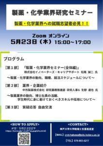 【修士・博士】神戸大学主催:製薬・化学業界研究セミナー