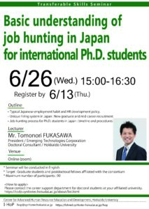 【MC,DC,PD】北海道大学主催:Basic understanding of job hunting in Japan for international Ph.D students(6/26)